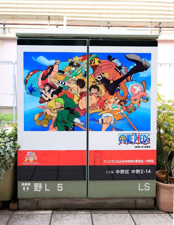 海贼王官方宣布在东京都中野区“NAKANO壁画·动画之路”项目中,由海贼王动画主题包装的配电地上设备正式亮相!