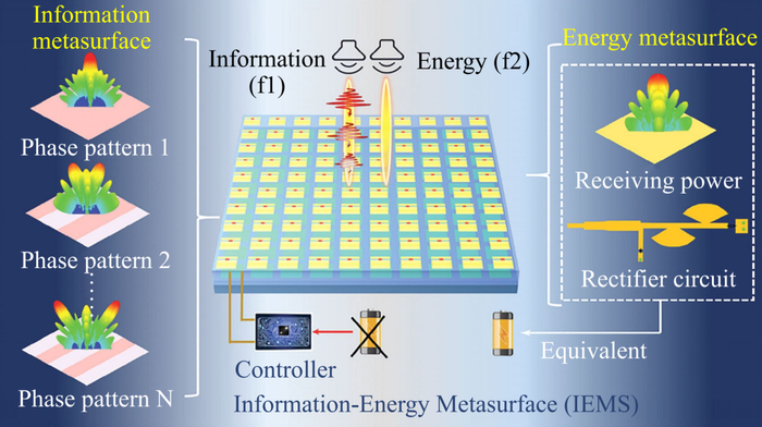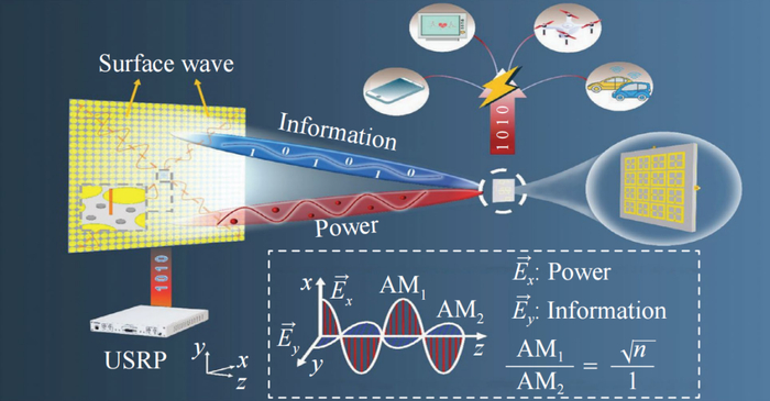 图15 利用离子液滴振动调节高度的可调频多功能复合超表面3、同步无线信息与电力传输超表面