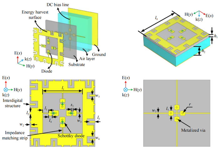 能量收集超表面以其优秀的极化不敏感和入射角不敏感特性,可以很好地用在无线输能系统中的接收端。能量收集超表面通常用于捕获特定发射机发射的射频能量,器件在较高的入射功率下可以高效运行。