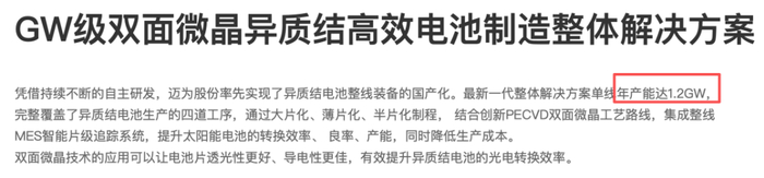 迈为股份是国内少数能提供HJT电池整线生产解决方案的设备商之一,且能实现GW级钙钛矿专用设备整线交付的企业,自主研发的钙钛矿PECVD设备单台产能超1GW。